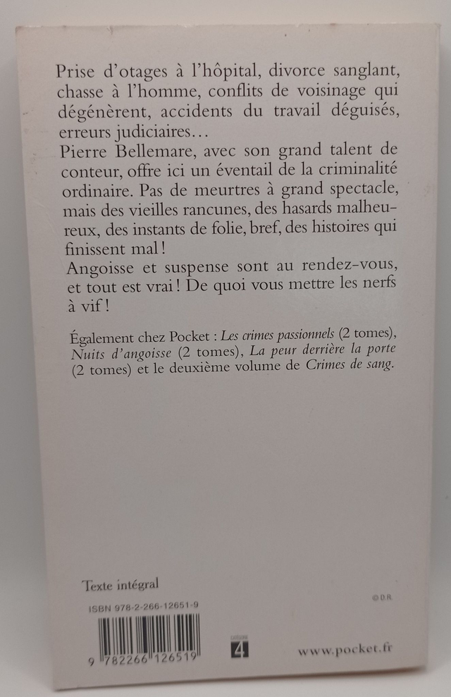 Prise d'otage à l'hôpital, divorce sanglant, chasse à l'homme, conflits de voisinage qui dégénèrent, accidents du travail déguisés, erreurs judiciaires... Pierre Bellemare, avec son grand talent de conteur, offre ici un éventail de la criminalité ordinaire. Pas de meurtres à grand spectacle, mais des vieilles rancunes, des hasards malheureux, des instants de folie, bref des histoires qui finis-sent mal !
