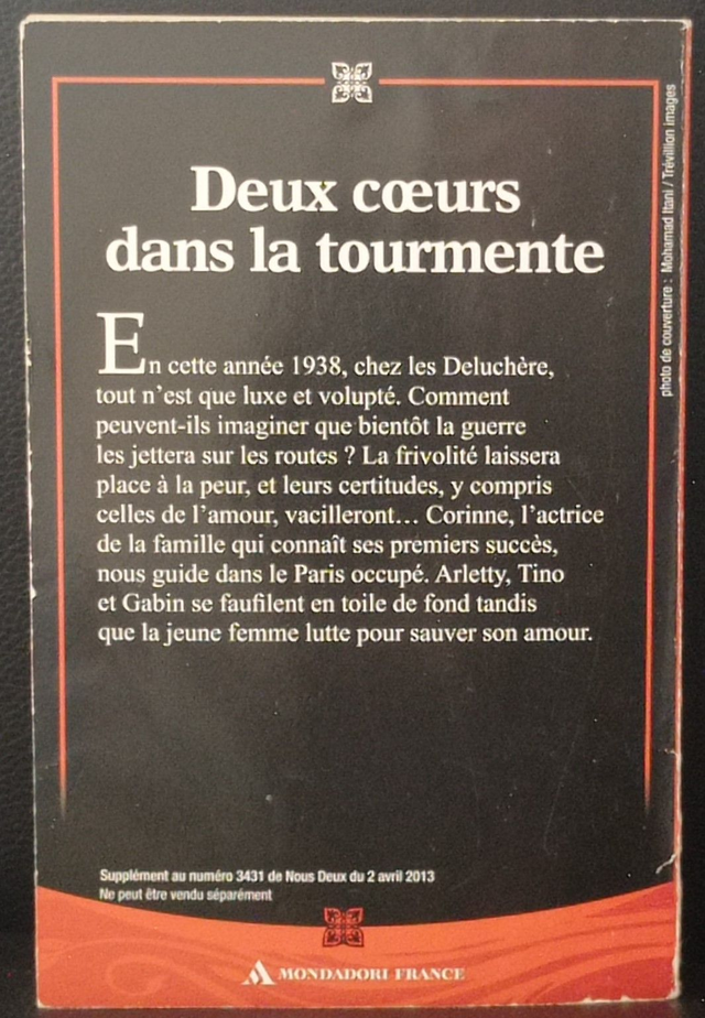 En cette année 1938, chez les Deluchère, tout n'est que luxe et volupté. Comment peuvent-ils imaginer que bientôt la guerre les jettera sur les routes ? La frivolité laissera place à la peur, et leurs certitudes, y compris celles de l'amour, vacilleront... Corinne, l'actrice de la famille qui connaît ses premiers succès, nous guide dans le Paris occupé. Arletty, Tino et Gabin se faufilent en toile de fond tandis que la jeune femme lutte pour sauver son amour.