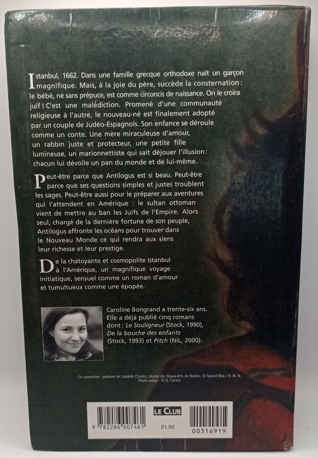 Istanbul, 1662. Dans une famille grecque orthodoxe naît un garçon magnifique. Mais, à la joie du père, succède la consternation : le bébé, né sans prépuce, est comme circoncis de naissance. On le croira juif ! C'est une malédiction. Promené d'une communauté religieuse à l'autre, le nouveau-né est finalement adopté par un couple de Judéo-Espagnols. Son enfance se déroule comme un conte. Une mère miraculeuse d'amour, un rabbin juste et protecteur, une petite fille lumineuse, un marionnettiste qui sait déjouer l'illusion chacun lui dévoile un pan du monde et de lui-même. Peut-être parce que Antilogus est si beau. Peut-être parce que ses questions simples et justes troublent les sages. Peut-être aussi pour le préparer aux aventures qui l'attendent en Amérique : le sultan ottoman vient de mettre au ban les Juifs de l'Empire.