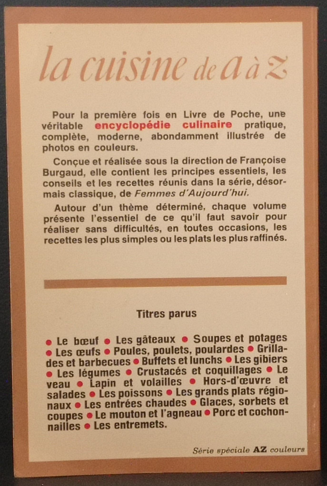 Conçu et réalisée sous la direction de Françoise Burgaud, elle contient les principes essentiels, les conseils et les recettes réunis dans la série, désormais classique, de Femmes d'Aujourd'hui.