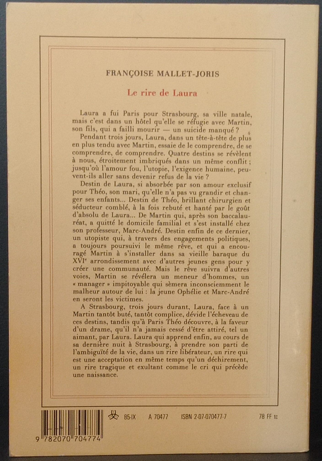 Laura a fui Paris pour Strasbourg, sa ville natale, mais c'est dans un hôtel qu' elle se réfugie avec Martin, son fils, qui a failli mourir - un suicide manqué ? Pendant trois jours, Laura, dans un tête-à-tête de plus en plus tendu avec Martin, essaie de le comprendre, de se comprendre, de comprendre. Quatre destins se révèlent à nous, étroitement imbriqués dans un même conflit ; jusqu'où l'amour fou, l'utopie, l'exigence humaine, peuvent-ils aller sans devenir refus de la vie ?