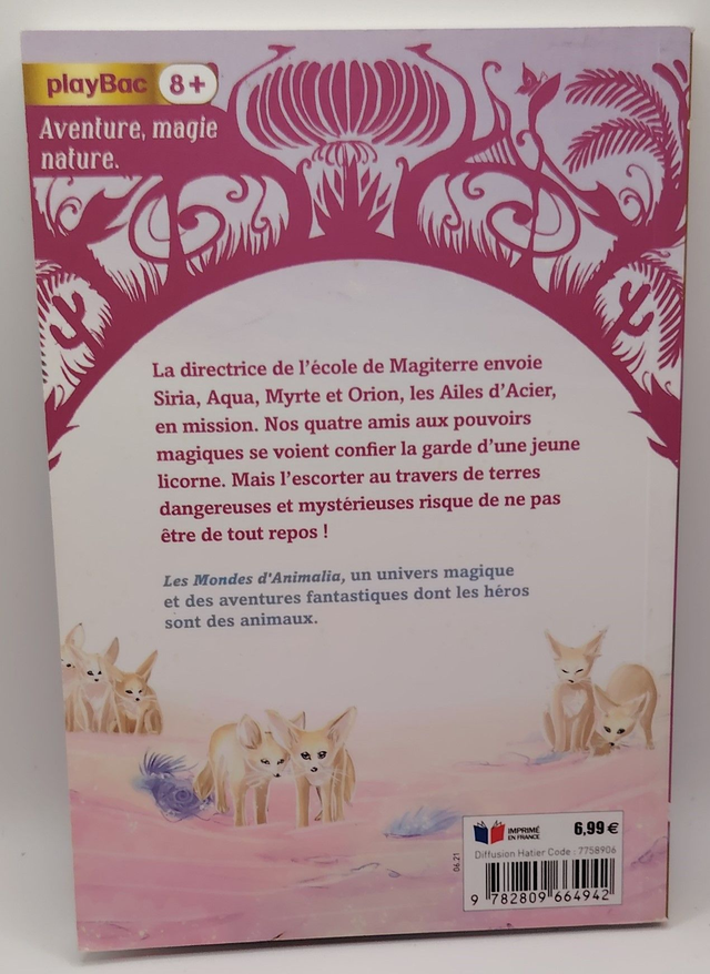 La directrice de l'école de Magiterre envoie Siria, Aqua, Myrte et Orion, les Ailes d'Acier, en mission. Nos quatre amis aux pouvoirs magiques se voient confier la garde d'une jeune licorne. Mais l'escorter au travers de terres dangereuses et mystérieuses risque de ne pas être de tout repos !