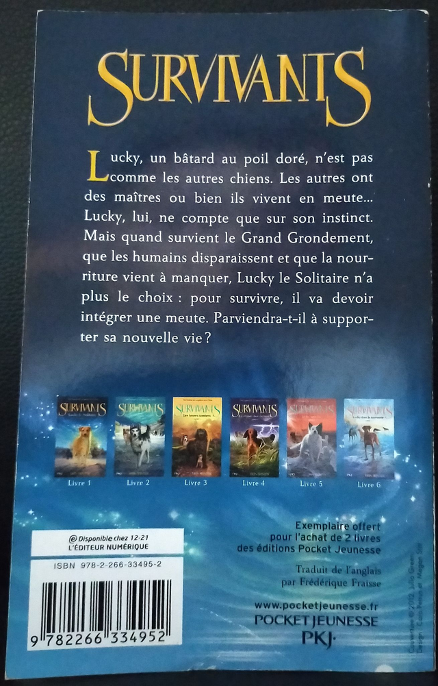 Lucky, un bâtard au poil doré, n'est pas comme les autres chiens. Les autres ont des maîtres ou bien ils vivent en meute... Lucky, lui, ne compte que sur son instinct. Mais quand survient le Grand Grondement, que les humains disparaissent et que la nourriture vient à manquer. Lucky le Solitaire n'a plus le choix : pour survivre, il va devoir intégrer une meute. Parviendra-t-il à supporte sa nouvelle vie ?